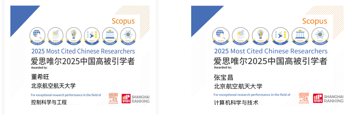2026年1月30日,爱思唯尔(Elsevier)正式发布2025 “中国高被引学者”(Highly Cited Chinese Researchers)榜单。北京航空航天大学有59位学者入选,人工智能学院(人工智能研究院)董希旺教授、张宝昌教授入选榜单。